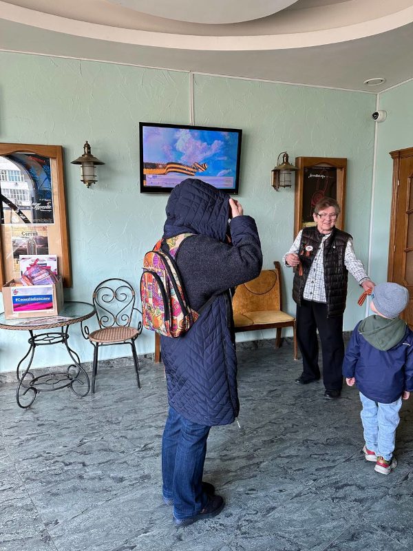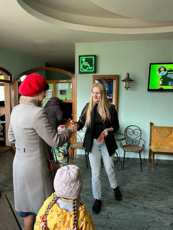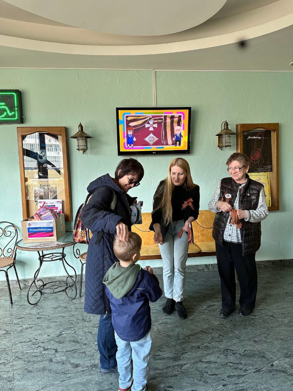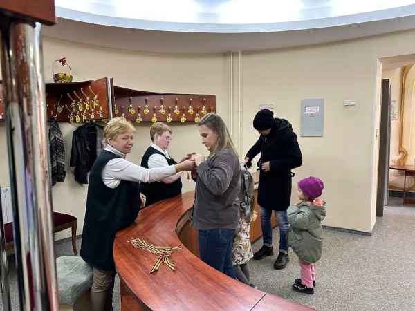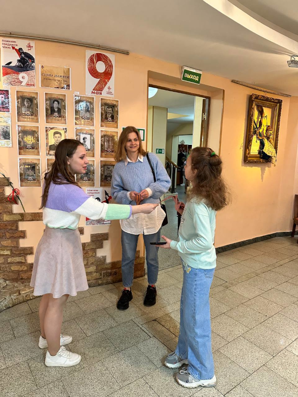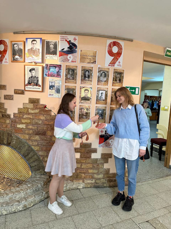 Каждому зрителю при входе в театр, наши сотрудники дарят георгиевские ленты в знак памяти о великом подвиге наших предков. А перед спектаклями мы рассказываем о значении этой самой ленты и о её истории.