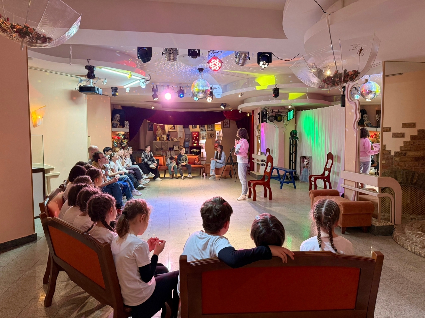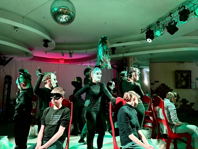 С утра в фойе театра прошёл спектакль «Хозяйка зачарованного леса» от инклюзивной театральной студии «Овация» из Волгограда. Эта сказочная, таинственная история была показана для особенных гостей — на спектакль приехали ребята с нарушениями зрения из Сергиева Посада. Для них театр открылся новыми ощущениями: через звук, голос, пластику и прикосновение к сцене. 🌿✨