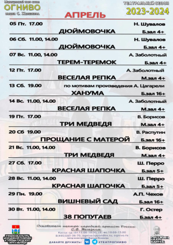 Стоимость билетов на спектакли для детской аудитории - 500 рублей.
