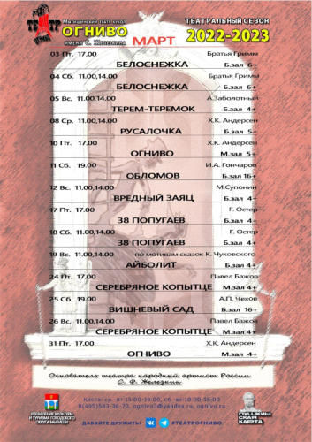 Обратите внимание! Приобрести билеты на спектакли вы можете с 01 февраля 2023 года в кассе театра в часы её работы.