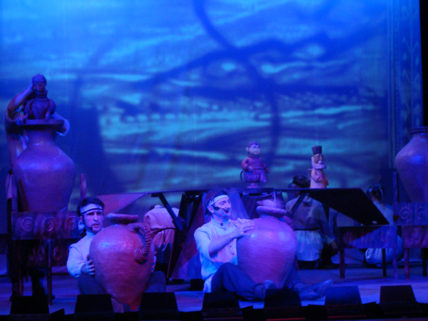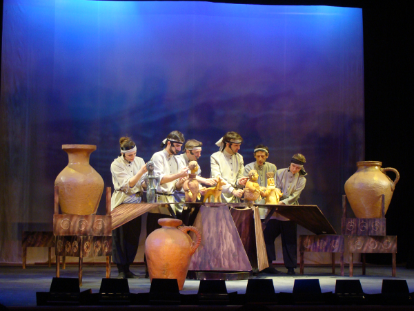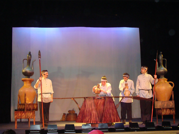 Замечательный дагестанский писатель-драматург и сказочник Ахмедхан Абу-Бакар, по пьесе которого поставлен спектакль "Нур-Эддин - золотые руки", поведал нам историю о древнейшем гончарном ремесле и преданных своему делу мастерах - мудром дедушке Хабибе и о трудолюбивом мальчике Нур-Эддине. Героиней сказки является смелая и добрая девочка Зумруд, которая не испугалась злых разбойников и спасла Нур-Эддина от беды.