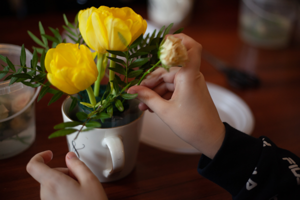 После спектакля маленьких зрителей ждал мастер-класс от Лавки Цветочника. Каждый букетик, который был собран – ребята унесли с собой домой.