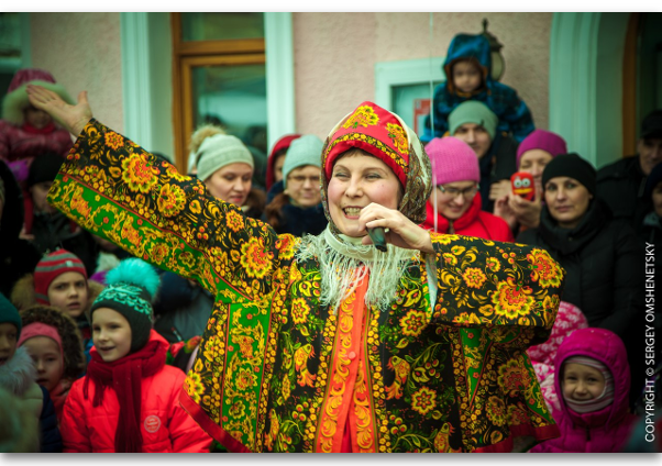 А завершилась масленичная неделя уличным представлением. Вместе со сказочными персонажами гости праздника мерились силой, пели частушки и танцевали.