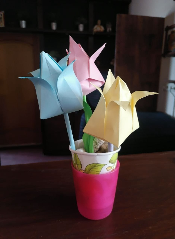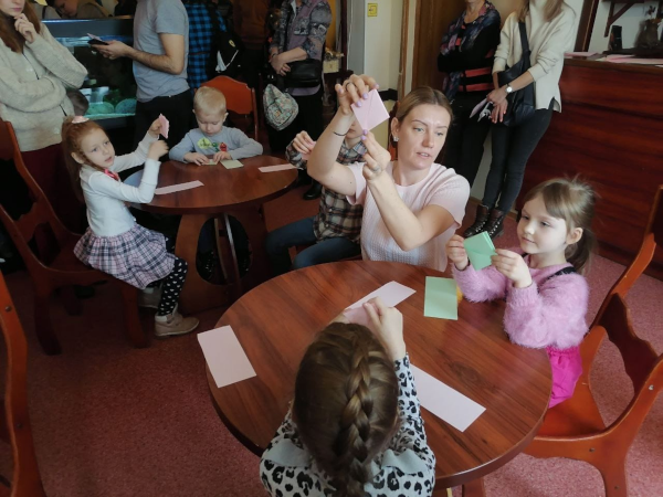 В международный День театра перед спектаклем «Огниво» сотрудники КИЦ «Леонидовка» поздравили наш коллектив с праздником и провели для ребят мастер-класс по изготовлению тюльпанов из бумаги.