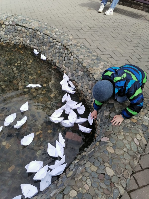 В рамках мероприятия состоялся мастер-класс от #ВолонтёровПодмосковья по изготовлению бумажных корабликов, которые после открытия фонтана ребятишки запустили в фонтан.
