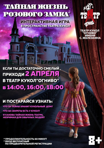 Первыми загадки Тайного розового замка, отгадаете ли викторины в день Кукольника, (https://vk.com/wall-10658571_6668), с вами свяжется наш администратор, благодарим вас за участие и восхищаемся вашей сообразительностью.