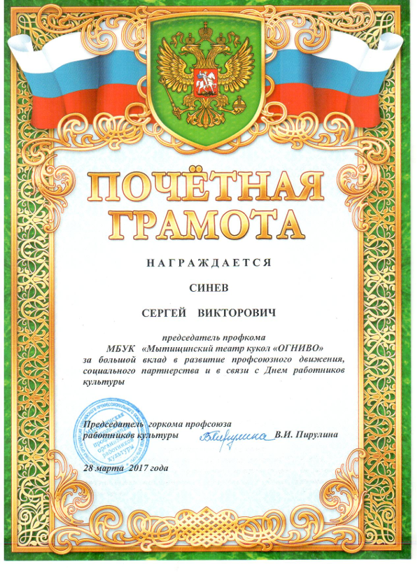 За большой вклад в развитие театрального искусства Подмосковья и в связи с празднованием Дня работника культуры поздравляем заслуженного артиста России Алексея Гущука и заслуженного артиста Московской области Сергея Синева.