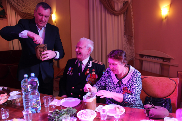 20 лет коллектив театра "Огниво" проводит праздник, посвященный Дню Победы. Этот год не стал исключением. 05 мая в театре «Огниво» состоялась тёплая дружеская встреча с любимыми нам ветеранами войны и труда Мытищинского района. Артисты театра представили для ветеранов концертную программу, в которой звучали стихи и песни военных лет. Перед ветеранами со словами благодарности за их подвиг, за труд, за самоотверженную отдачу во имя победы, с пожеланиями долгих лет жизни и надеждой вновь через год встретиться тем же составом выступили Председатель ТОС мкр. Шараповка А.С. Доронин, художественный руководитель-директор театра кукол «Огниво», депутат Совета депутатов городского округа Мытищи С.Ф. Железкин, Председатель Совета ветеранов мкр. Шараповка Н.С. Савостенок, член Совета ТОС мкр. Шараповка Коршунов В.А., почётный гражданин мытищинского района, Ветеран войны Р.А. Рязанова. После программы, по сложившейся традиции праздник продолжился в уютном фойе театра. Под "боевые сто граммов" за фронтовым застольем ветераны и артисты театра пели песни под баян, читали стихи и делились воспоминаниями.