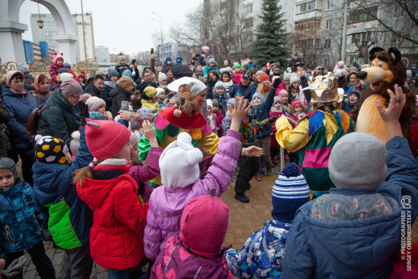 На праздник к горожанам пришли любимые сказочные герои. Все вместе веселились, танцевали, громко пели, мерились силой… И, конечно же, под самый конец программы случилось то, ради чего все и собрались. Под громкое «Гори, гори ясно, чтобы не погасло!» главный символ праздника зажглась ярким пламенем.