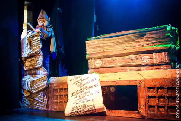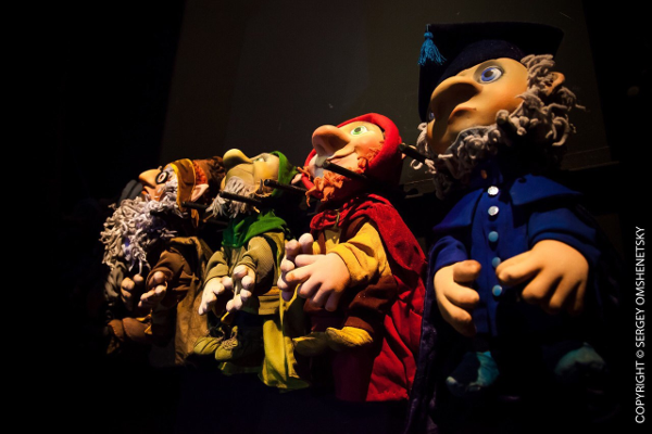 В мытищинской «Белоснежке» много юмора, шуток, интересных актерских находок и симпатичных кукол-персонажей. А куда же без них! Художник Елена Береснева решила, что в новогодней истории будет задействовано три системы кукол: тантамарески, гапитно-тростевые и перчаточные.