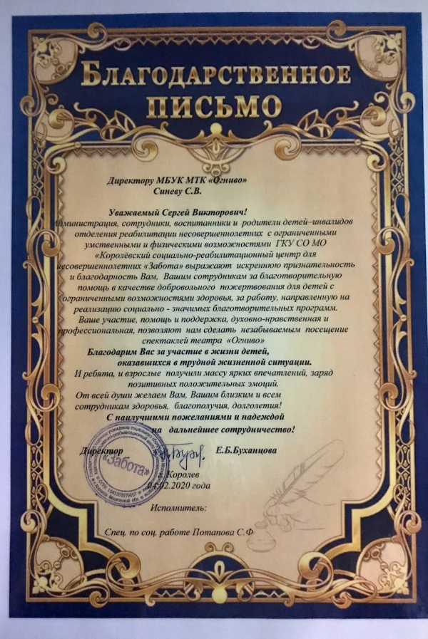 В театре кукол «Огниво» им. С. Железкина прошёл театральный урок-беседа «Театр кукол изнутри» для воспитанников социально-реабилитационного центра для несовершеннолетних «Забота» (г. Королев). Худрук Алексей Гущук рассказал присутствующим, как устроен театр, из чего делают кукол и декорации, а также об истории нашего театра.
