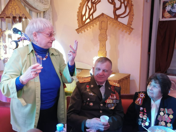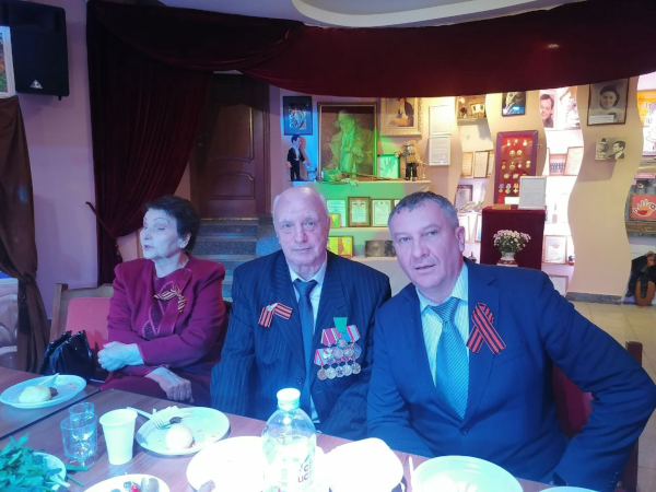 После концертной программы, по сложившейся традиции праздник продолжился в уютном фойе. За большим и дружным столом ветераны вспоминали военные годы, читали стихи, пели песни под баян «Смуглянку» и «Катюшу».