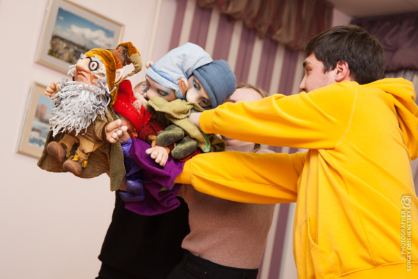 Так же артисты театра «Огниво» рассказали немного о куклах. Как они устроены, из чего они сделаны, как правильно нужно их водить – ребятишки и взрослые с большим интересом и неподдельным любопытством слушали рассказ о марионетках, перчаточных и тростевых куклах.