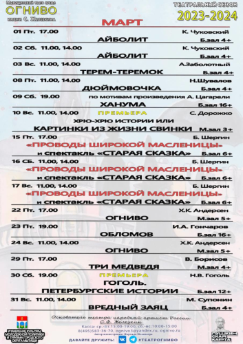 Уважаемые зрители! Добавлена афиша на март 2024 года.