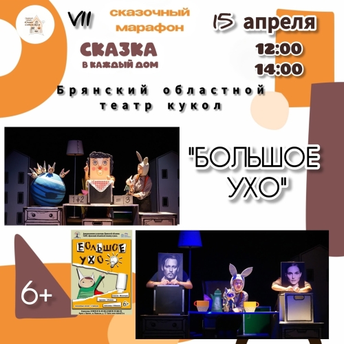 Брянский областной театр кукол привозит к нам спектакль «Большое ухо». Он идёт на жестовом языке и доступен для просмотра неслышащим и слабослышащим зрителям от 6 лет.