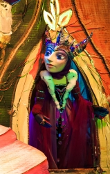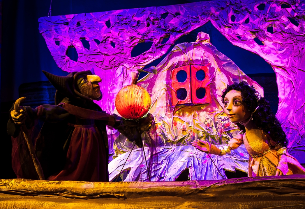 В «Белоснежке» много юмора, шуток, интересных актерских находок и симпатичных кукол-персонажей. А куда же без них! Художник Елена Береснева решила, что в истории будет задействовано три системы кукол: тантамарески, гапитно-тростевые и перчаточные.