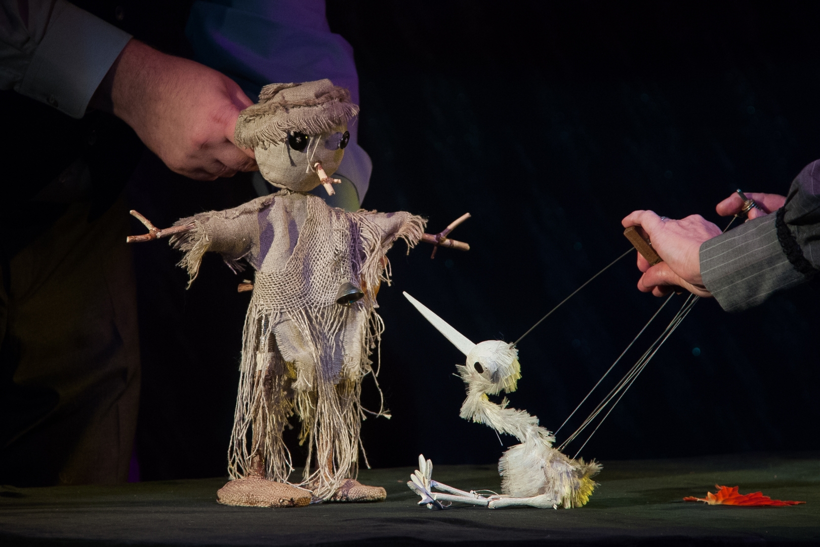 Слезы подступают к глазам в финале спектакля, когда к оставшемуся одному пугалу прилетает совсем уже взрослый аистенок и приносит в клюве малыша – точную копию старого пугала, с таким же колокольчиком – сердцем.