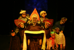 Ожидая «Синдбада» в замкнутом пространстве, герои выдумывают его путешествие, полное свободы, простора, ярких красок и приключений, исходя из своих представлений о мире и внутренней свободе человека. Попадая на острова «Синдбад» оказывается в условиях, соответствующих человеческим качествам того или иного из героев пьесы: у «Любвеобильной» - это остров любви, у «Справедливого» и «Равноправной» - остров обезьян, где обезьяны – это народ, масса, просто толпа. У «Алчного» - остров алмазов, а у «Маниакально- депрессивного» - остров людоеда.