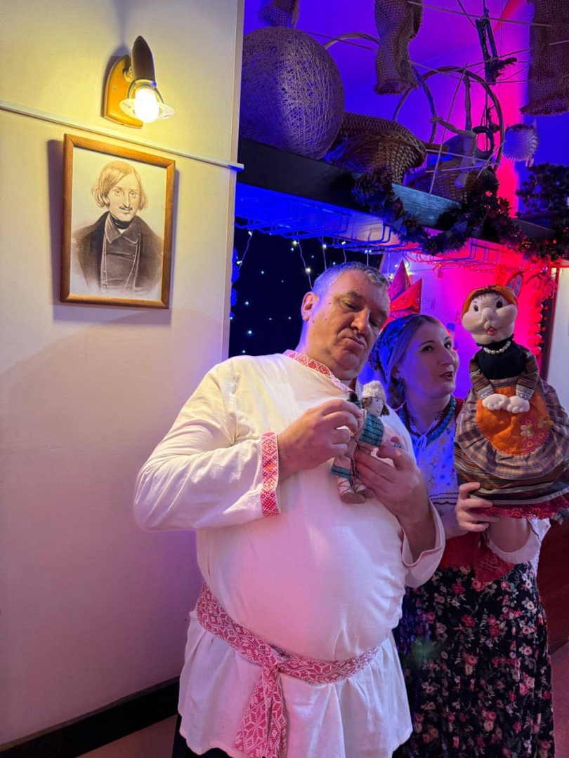 Оксана и Вакула рассказывают веселые истории и вспоминают события той памятной ночи, наполненной волшебством и чудесами. За столиками зрители наслаждаются традиционными казачьими блюдами — ароматным салом и горячими варениками, создавая неповторимую праздничную атмосферу.
